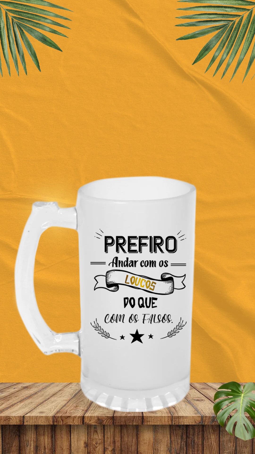 Caneca de Chopp Personalizada 460ml em Vidro Jateado