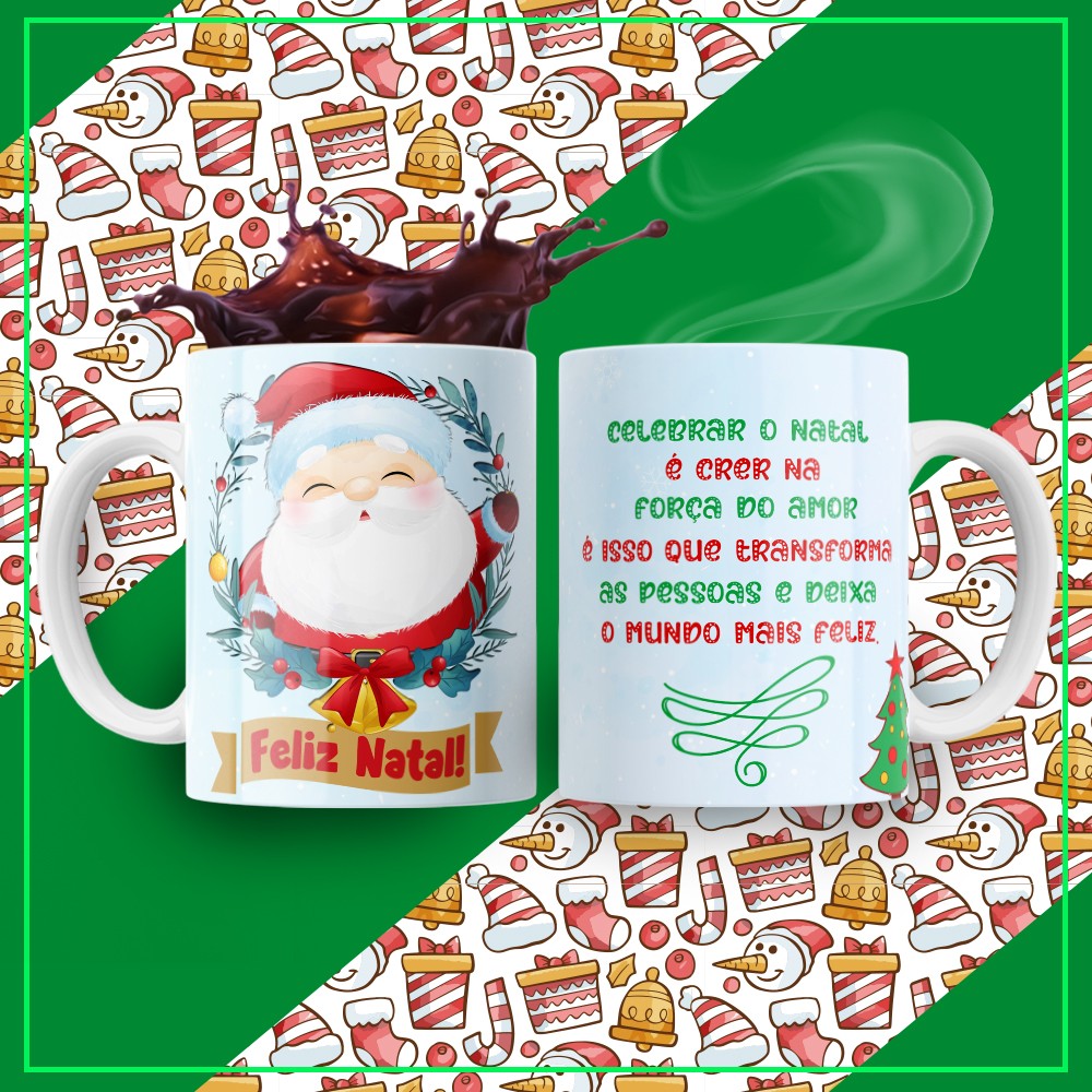 são o presente perfeito para celebrar a magia natalina com criatividade e carinho. Produzidas com alta qualidade e impressão profissional, nossas canecas podem ser personalizadas com nome, mensagem especial, fotos, personagens natalinos, símbolos tradicionais, frases motivacionais e muito mais — criando um presente exclusivo e cheio de emoção.