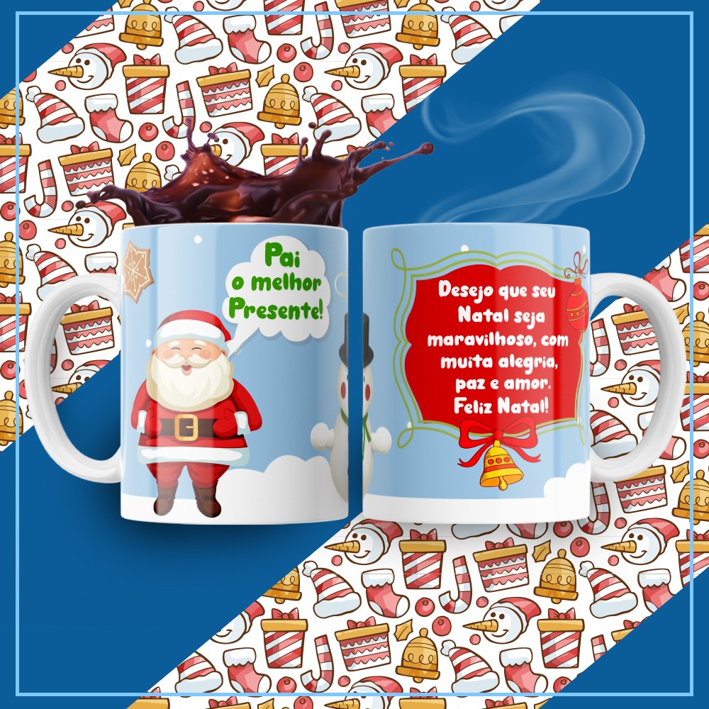 são o presente perfeito para celebrar a magia natalina com criatividade e carinho. Produzidas com alta qualidade e impressão profissional, nossas canecas podem ser personalizadas com nome, mensagem especial, fotos, personagens natalinos, símbolos tradicionais, frases motivacionais e muito mais — criando um presente exclusivo e cheio de emoção.