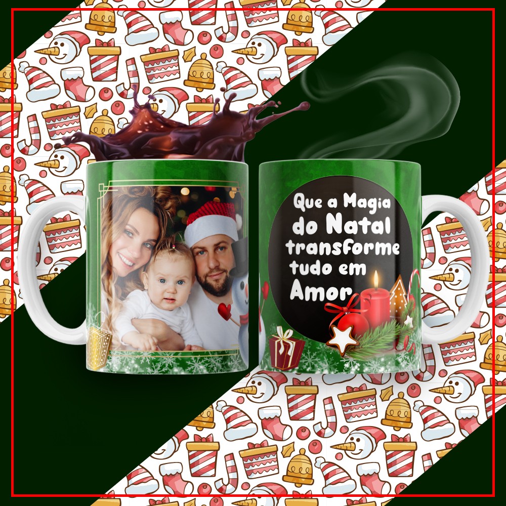 são o presente perfeito para celebrar a magia natalina com criatividade e carinho. Produzidas com alta qualidade e impressão profissional, nossas canecas podem ser personalizadas com nome, mensagem especial, fotos, personagens natalinos, símbolos tradicionais, frases motivacionais e muito mais — criando um presente exclusivo e cheio de emoção.